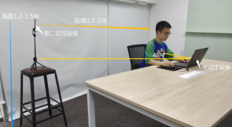 桌面只能摆放笔、空白草稿纸和身份证件,严谨摆放与考试无关的物品。搭建考试环境见下图所示。
