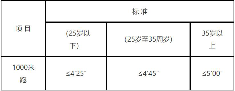 1、测试方法:男子1000米;考生站立起跑,从弧形起跑线出发,起跑后不分跑道。